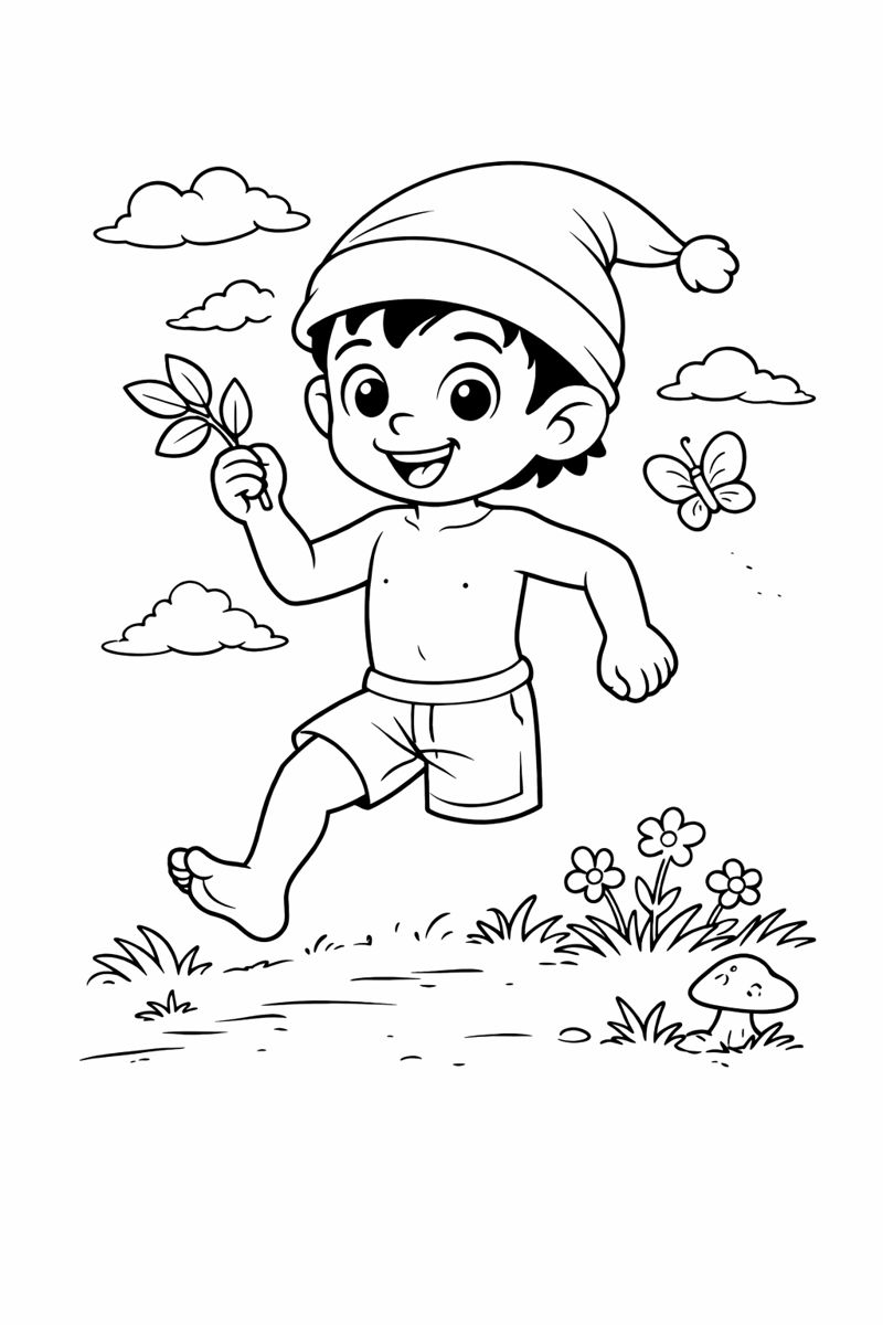 Confira este desenho de Saci-Pererê para imprimir e colorir. Abra o arquivo em alta qualidade no botão Imprimir desenho ou use Personalizar para adicionar texto e molduras.
