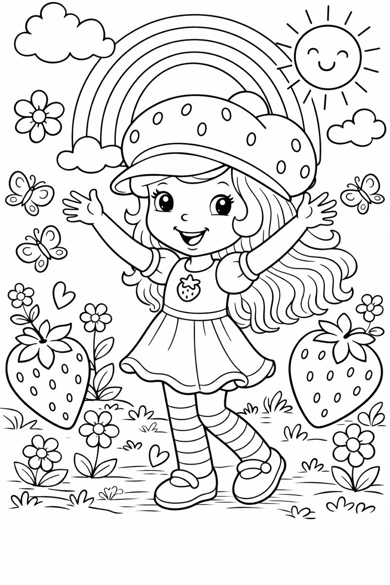 Confira este desenho de Moranguinho para imprimir e colorir. Abra o arquivo em alta qualidade no botão Imprimir desenho ou use Personalizar para adicionar texto e molduras.